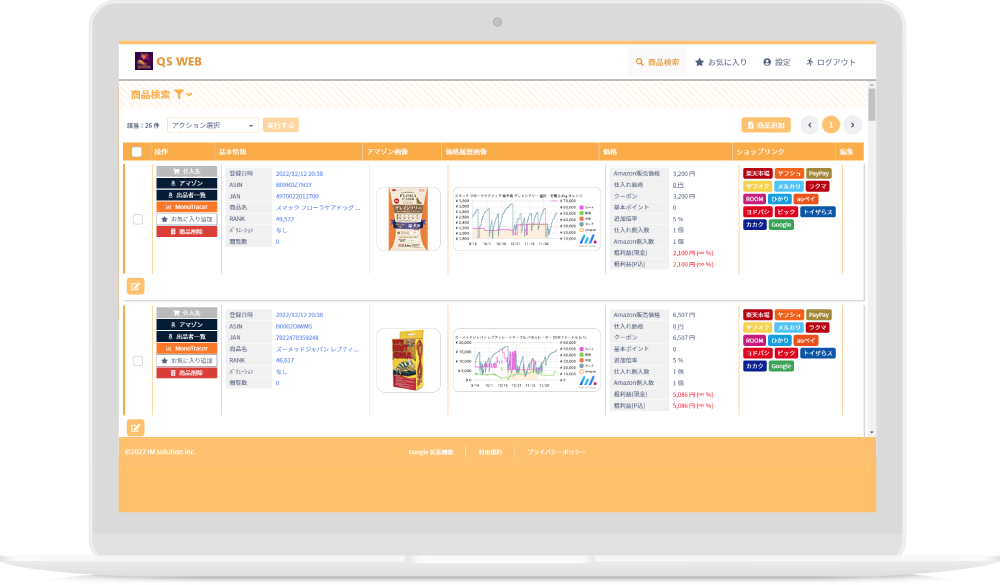 QSWEBはリサーチした商品を管理し、定期的にウォッチする為に開発された管理ツールです。